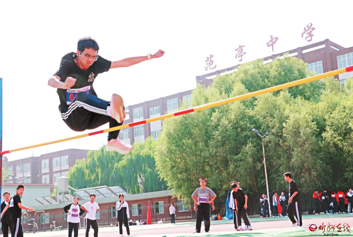 近日,2025年原平市中小學(xué)秋季田徑運動會在原平市范亭中學(xué)體育場舉行。圖為參賽選手在跳高比賽中大顯身手。 (