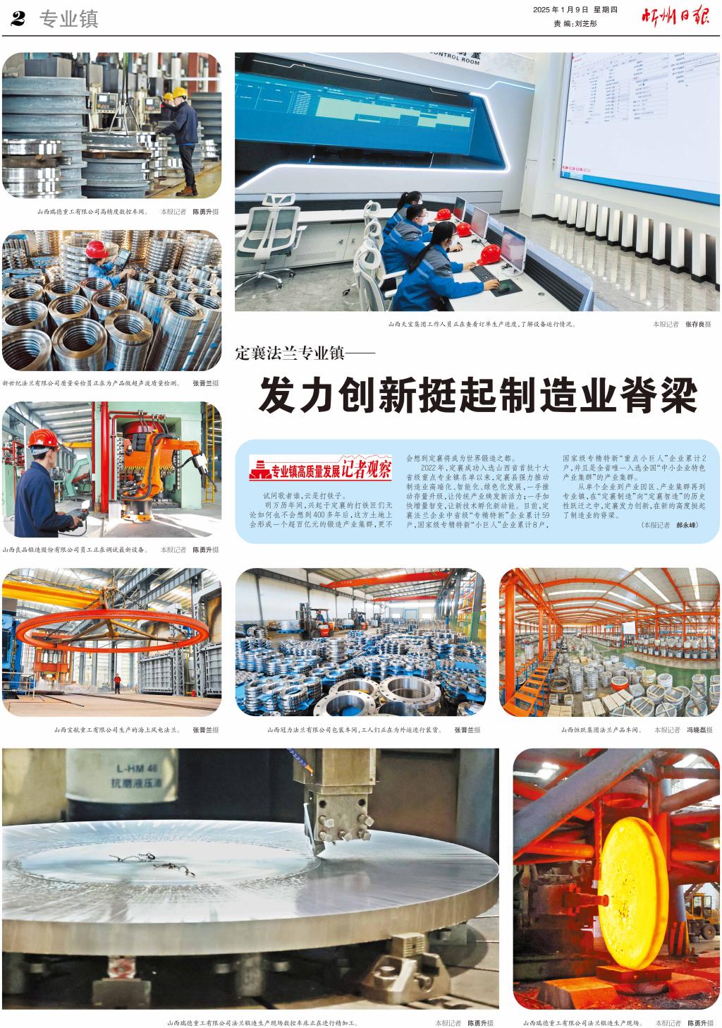浪涌四方,潮起定襄。定襄,這個以法蘭鍛造聞名全國的晉北工業(yè)小城自2022年成功入選山西省首批十大省級重點專業(yè)鎮(zhèn)以來,就開始了在法蘭產(chǎn)業(yè)賽道上的強勢進階。去年以來,定襄縣以黨的二十屆三中全會精神為指引,全面深化改革,用“高”“智”“綠”“服”的理念和行動,進一步推進法蘭產(chǎn)業(yè)質量變革、效率變革、動力變革。