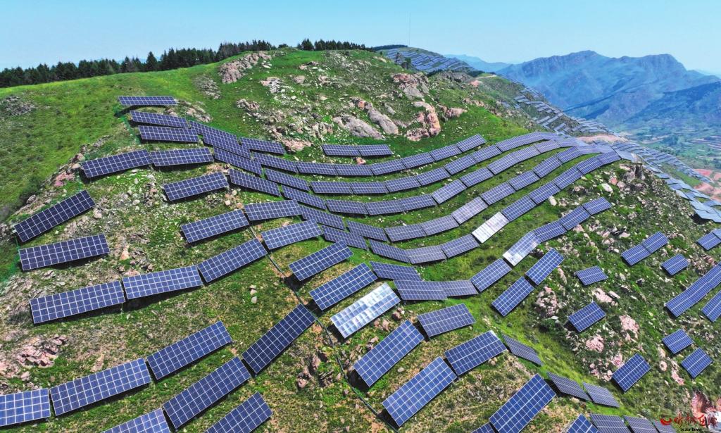 建在山坡上的原平市160MW光伏產(chǎn)業(yè)融合發(fā)展項(xiàng)目已并網(wǎng)發(fā)電。本報(bào)記者張存良攝