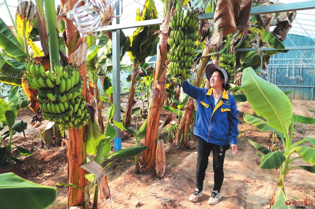去年,侯學(xué)光在大棚開始試種“中蕉九號”?!靶酶畢^(qū)的水土環(huán)境竟與蕉苗生長條件高度契合,根系健壯少病害,首年就順利掛果。香蕉未熟時脆甜清香,成熟后軟糯可口,品質(zhì)不輸南方蕉?!彼d奮地向記者介紹說。通過邀請專家改良土壤、施用自產(chǎn)有機肥、科學(xué)規(guī)劃間距,曾經(jīng)的邊角地已變身茂密蕉林。