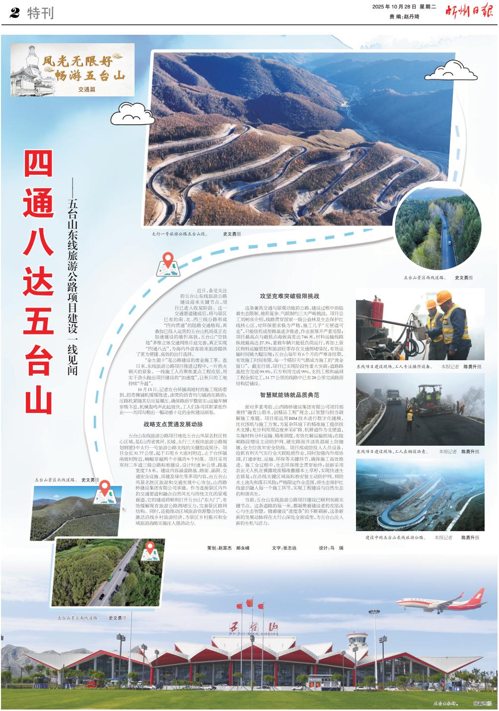 近日,備受關(guān)注的五臺山東線旅游公路建設(shè)迎來關(guān)鍵節(jié)點,項目已進入收尾階段。這一交通要道建成后,將與景區(qū)已有的南、北、西三線公路形成“四向貫通”的陸路交通格局,再疊加已投入運營的五臺山機場及正在加速建設(shè)的雄忻高鐵,五臺山“空鐵陸”多維立體交通網(wǎng)絡日益完善,真正實現(xiàn)“四通八達”,為海內(nèi)外游客前來旅游提供了更為便捷、高效的出行選擇。