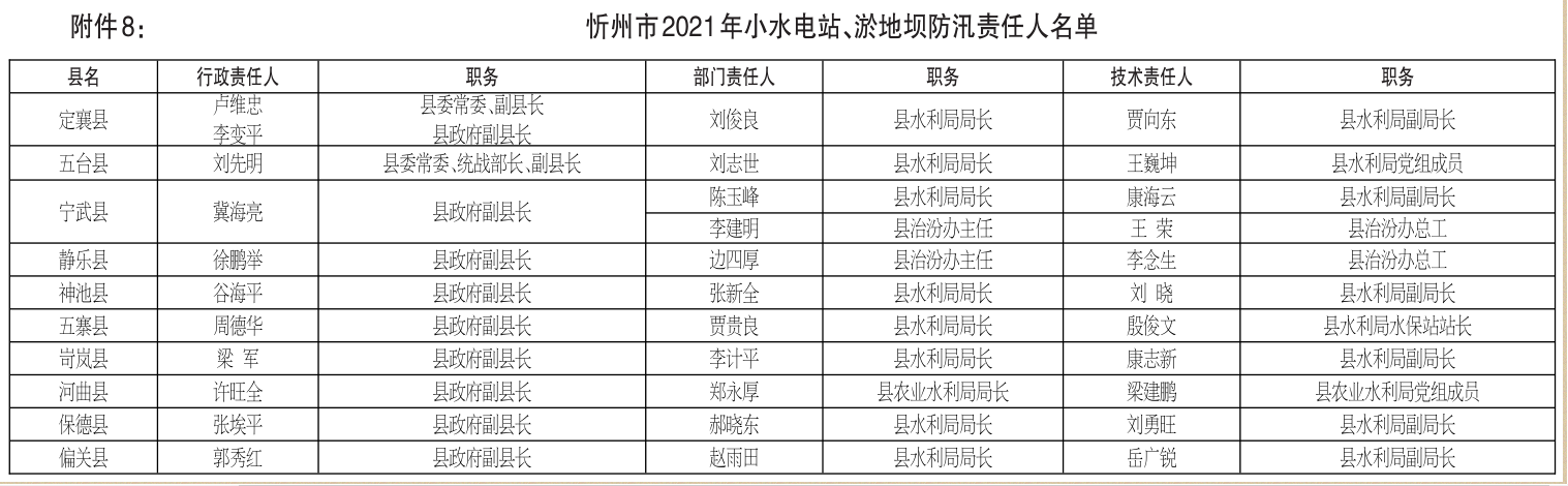 8.忻州市2021年小水電站、淤地壩防汛責(zé)任人名單