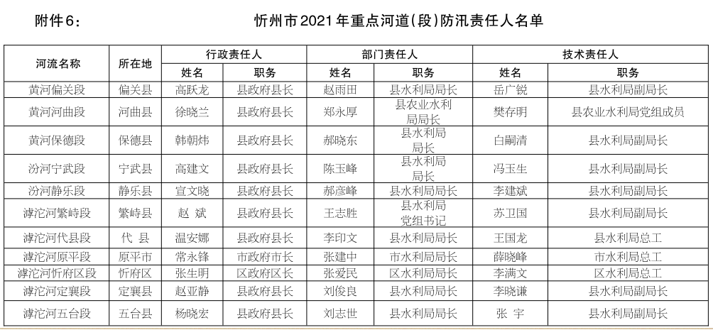 6.忻州市2021年重點河道(段)防汛責(zé)任人名單