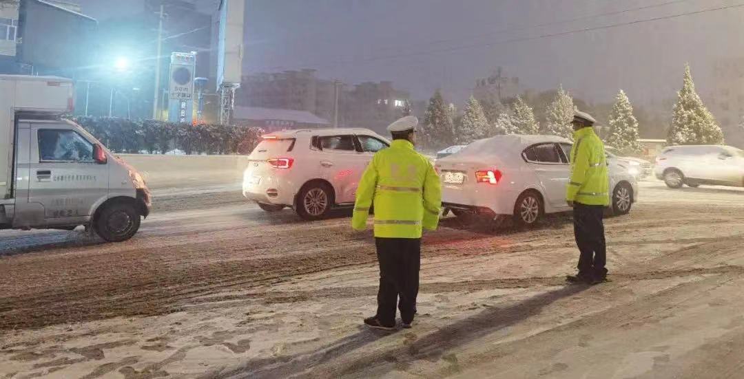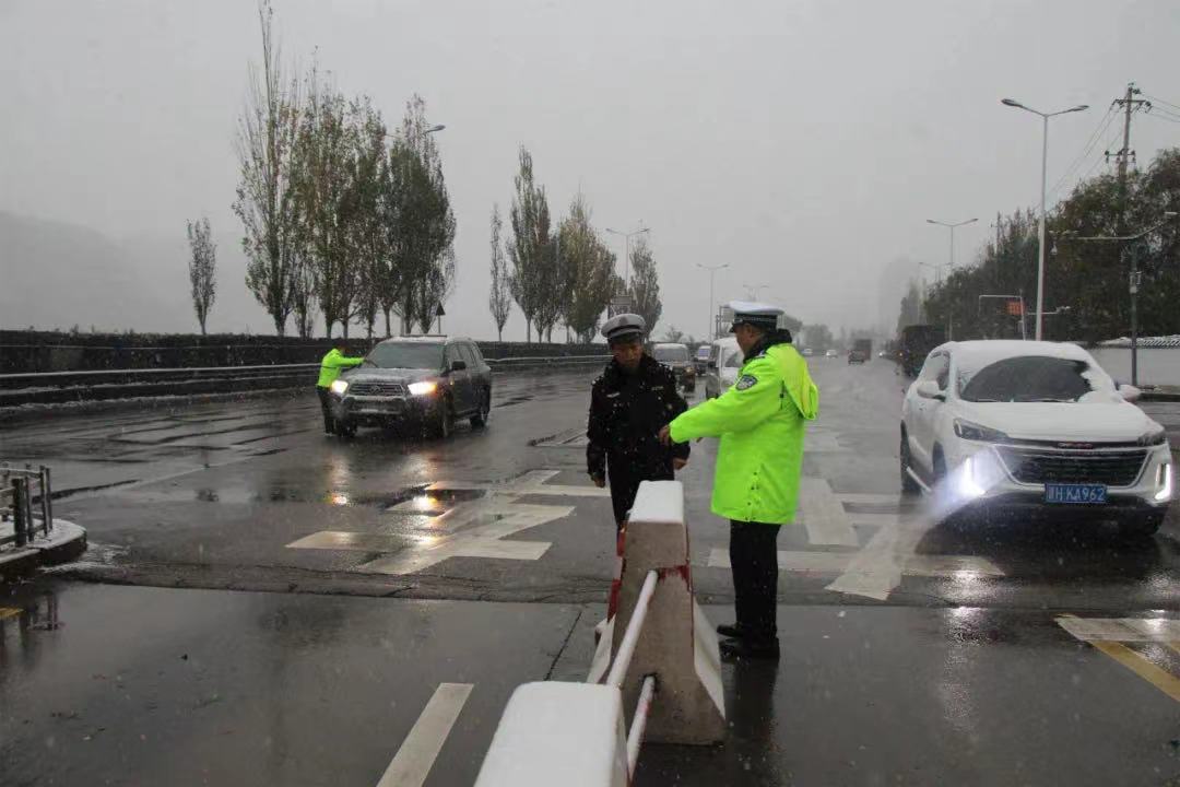 工作中,交警大隊迅速啟動惡劣天氣應(yīng)急預案,民警輔警全員上崗,在轄區(qū)各主要路段、路口采取定點執(zhí)勤與流動巡邏相結(jié)合的方式,加大路面管控和指揮疏導力度,防止高峰時段因雪天路滑造成擁堵現(xiàn)象。