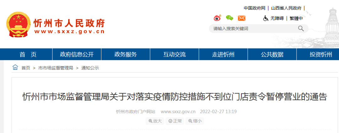 2月23日以來,忻州市市場監(jiān)督管理局落實(shí)省市疫情防控專題會議精神,對忻府區(qū)范圍內(nèi)商場、超市、賓館、酒店、藥店等經(jīng)營場所的疫情防控落實(shí)情況進(jìn)行督查檢查,發(fā)現(xiàn)個別門店落實(shí)疫情防控措施不到位,責(zé)令暫停營業(yè)。通告名單如下: