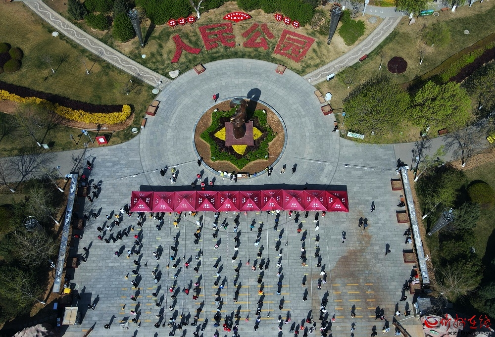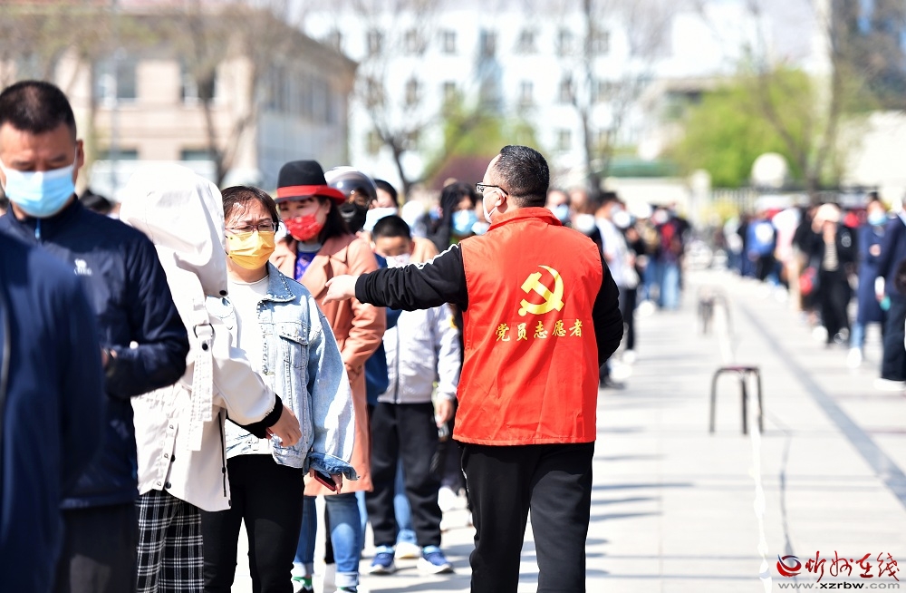 “我們城南區(qū)域設(shè)置了6個(gè)核酸檢測(cè)點(diǎn),許多黨員志愿者主動(dòng)請(qǐng)纓、投身疫情防控一線,用實(shí)際行動(dòng)展現(xiàn)了黨員的責(zé)任和擔(dān)當(dāng)。”在紅旗廣場(chǎng)檢測(cè)點(diǎn),南城辦黨工委書記張斌拿著小喇叭,在隊(duì)伍中間來(lái)回穿梭,指揮志愿者引導(dǎo)市民分批次、分時(shí)段有序檢測(cè),防止人員扎堆聚集,避免交叉感染。