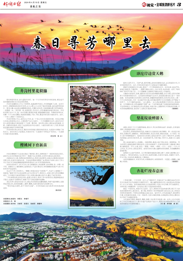 最美人間四月天。天朗氣清,惠風和暢,游客紛紛踏春出游,去往美麗的鄉(xiāng)村,盡享田園美好時光。近日,忻府區(qū)張村迎來不少游客追尋天鵝的倩影。