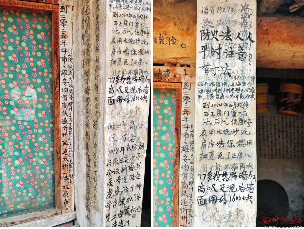 這幾天,忻州代縣峨口鎮(zhèn)上高陵村的一個(gè)老院子火了!院子的主人是一位叫張福青的老人,他把院中的老屋當(dāng)成“日記本”,一筆一畫,在磚墻上、門框上、房梁上、門楣窗欞上,密密麻麻地寫滿了文字。這些文字書寫著他作為一個(gè)普通人認(rèn)真生活的一生,讓人讀完不禁熱淚盈眶。