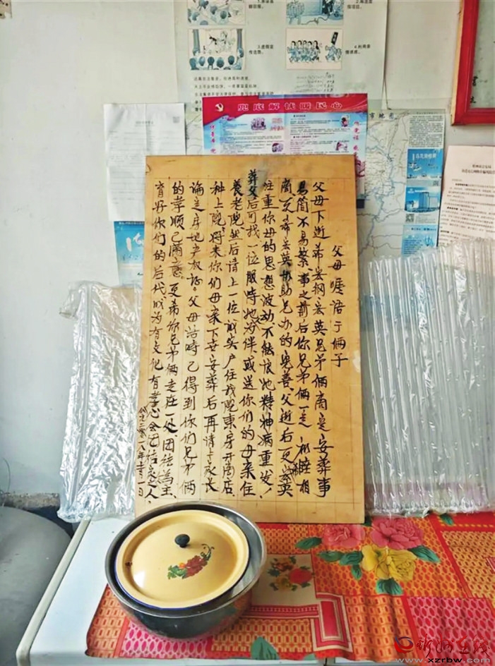 屋子里有他對(duì)孩子們事無巨細(xì)的囑咐,以及對(duì)孩子們未來的期待:“做飯開此門為排熱氣,對(duì)房屋人體有益”;“人要常存樂觀主義,人生樂觀、身心健康,能孝養(yǎng)父母、教育子女如何做人,不與不孝人交,教子女要敬養(yǎng)雙方父母,學(xué)會(huì)懂法、守法”。