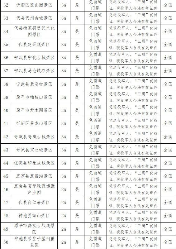 “五一”假期即將來(lái)臨,忻州市51家A級(jí)景區(qū)面向全國(guó)現(xiàn)役軍人、退役軍人和其他優(yōu)撫對(duì)象減免門(mén)票,熱烈歡迎廣大退役軍人暢游忻州!
