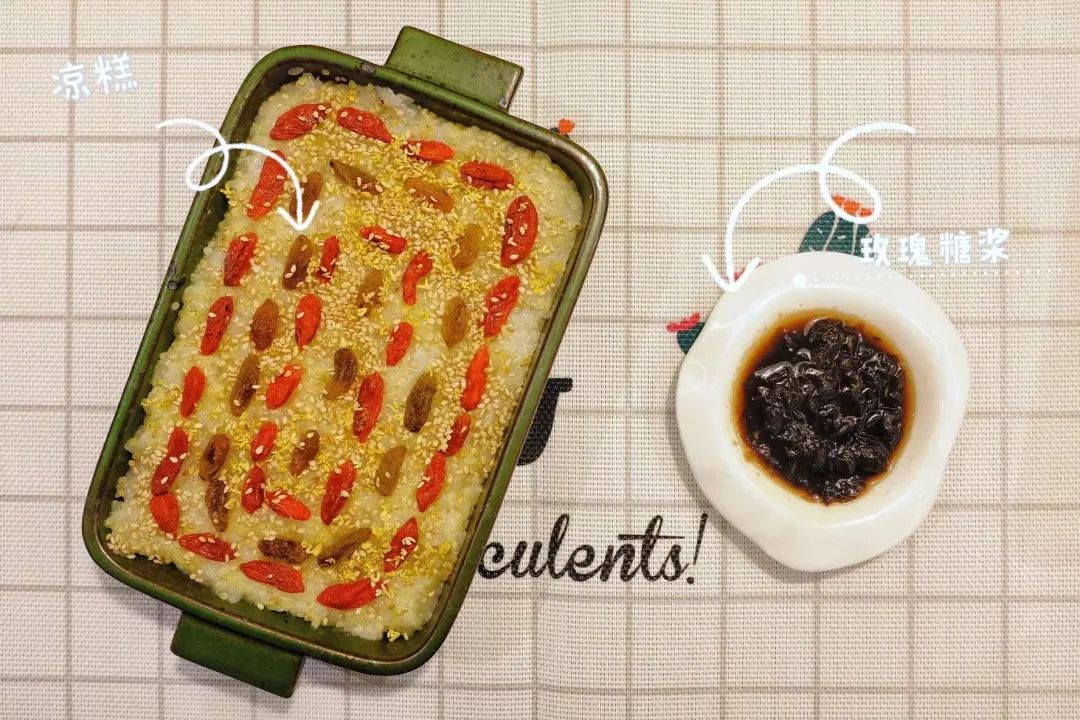 現(xiàn)代科學(xué)證明 酸米飯中含有豐富的乳酸菌 蔗糖會(huì)在發(fā)酵過(guò)程中變得很低 長(zhǎng)期食用可減肥、降低血糖血脂 改善心腦血管 常吃糜米酸飯的人 臉色紅潤(rùn)、皮膚潔白細(xì)嫩 ▼ (偏關(guān)人在農(nóng)歷五月初五,用糜米做成“涼糕”,再配上玫瑰糖漿,又是一道美味。攝影趙婧)