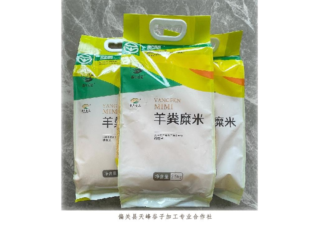 2022年獲得全國(guó)農(nóng)牧漁業(yè)豐收一等獎(jiǎng) 全縣糜米產(chǎn)業(yè)鏈條不斷延伸 糜米煎餅、糜米膨化小吃、糜米餅干等 附加值高的功能性方便食品深受好評(píng) 2023年 偏關(guān)縣被命名為“中國(guó)糜子之鄉(xiāng)”