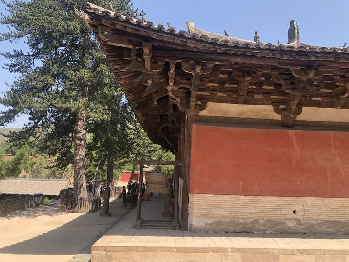 佛光寺,距離五臺(tái)山寺廟集中的臺(tái)懷鎮(zhèn)有四五十公里遠(yuǎn)。寺周圍東、南、北三面環(huán)山,只有西面低下而開闊,因此古寺因地勢(shì)而建,坐東朝西,高低層疊。