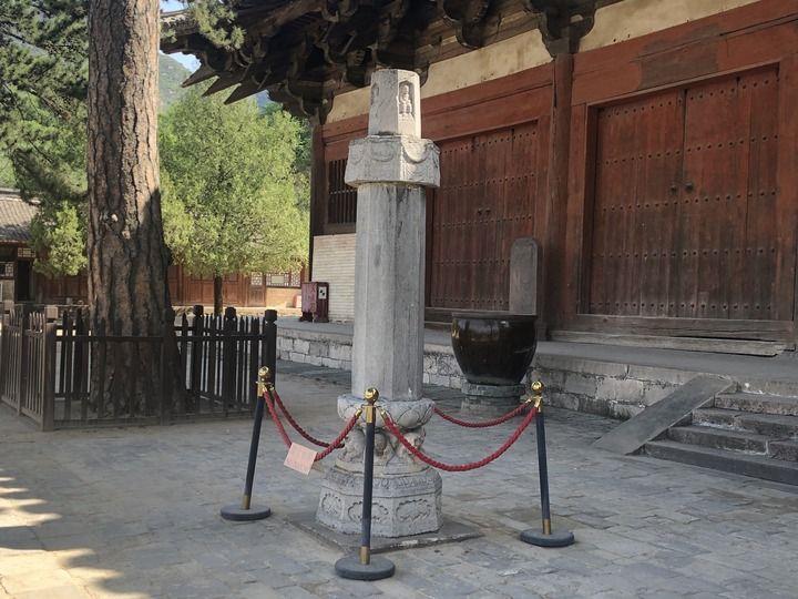 “徽因素來遠(yuǎn)視,獨(dú)見‘女弟子寧公遇’之名,深怕有誤,又詳細(xì)檢查階前經(jīng)幢上的姓名。幢上除有官職者外,果然也有‘女弟子寧公遇’者,稱為‘佛殿主’,名列在諸尼之前。”梁思成認(rèn)為,佛殿主之名既然寫在梁上,又刻在經(jīng)幢上,則經(jīng)幢的建造應(yīng)當(dāng)是與殿同時(shí),或在殿完工的時(shí)候。而石經(jīng)幢帶有紀(jì)年為“唐大中十一年”,即公元857年。這樣,殿的年代就可以推測(cè)出了。