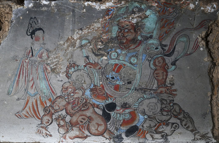 佛光寺東大殿內(nèi)的唐代壁畫。馬毅敏 攝。