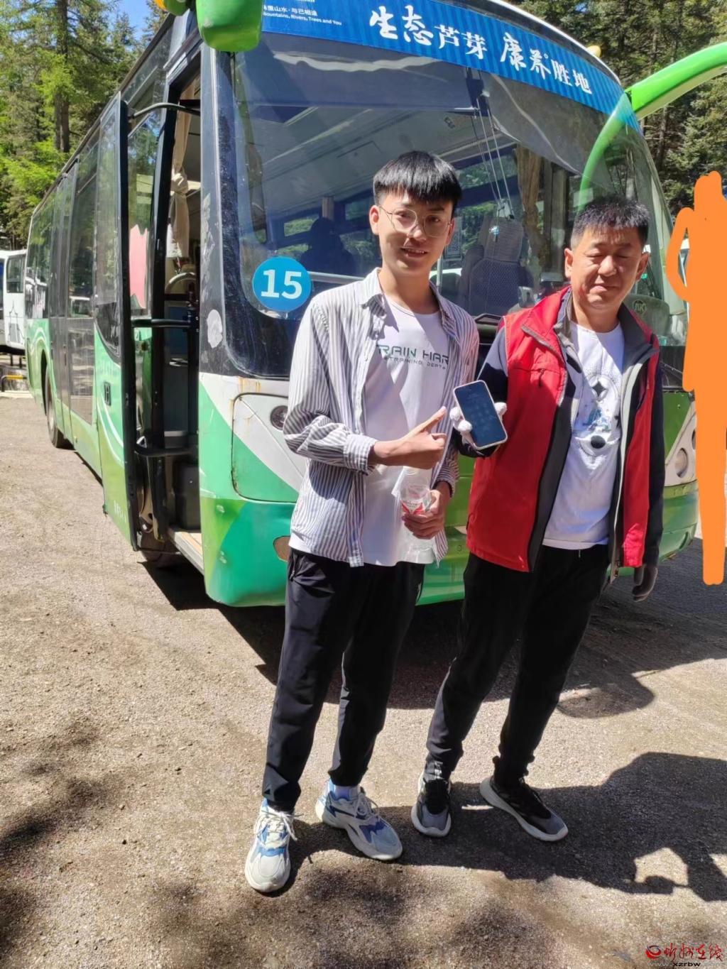 景區(qū)大巴車司機(jī)將拾到的手機(jī)送到游客手中
