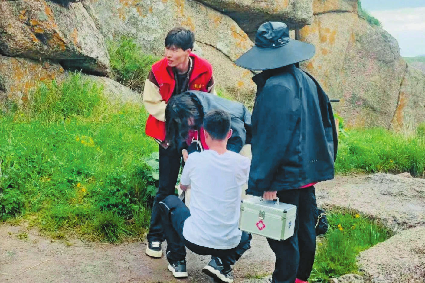 景區(qū)工作人員對扭傷游客及時(shí)救助