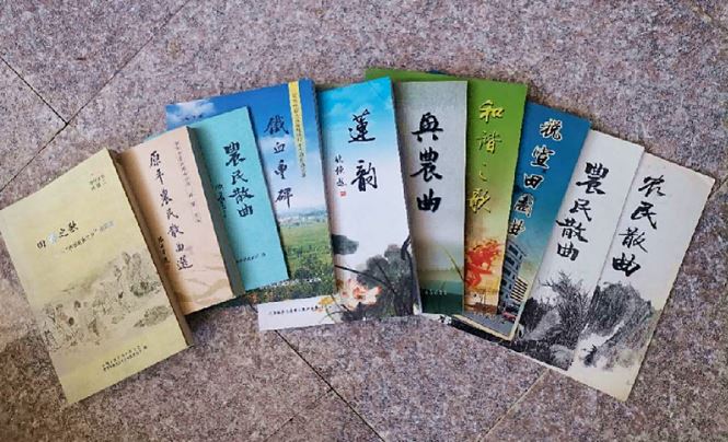 成員們的執(zhí)著與熱愛也結(jié)出了累累碩果。16年來,原平農(nóng)民散曲社陸續(xù)自費編輯出版了《興農(nóng)曲》《鐵血豐碑》《農(nóng)民散曲選》《田籟之歌》等10多冊農(nóng)民詩曲集,免費發(fā)給群眾閱讀;先后共創(chuàng)作散曲作品4萬余首,在省級以上書報刊物發(fā)表作品4000余首;噴繪展板300余幅,在各鄉(xiāng)村農(nóng)貿(mào)集市、戲場、廟會、婚慶等場地懸掛展出宣講200多場次,受眾達(dá)2萬人以上;利用現(xiàn)代網(wǎng)絡(luò)創(chuàng)辦微刊,現(xiàn)已發(fā)表作品300余期,在弘揚和發(fā)展中華優(yōu)秀傳統(tǒng)文化中起到了事半功倍的作用。