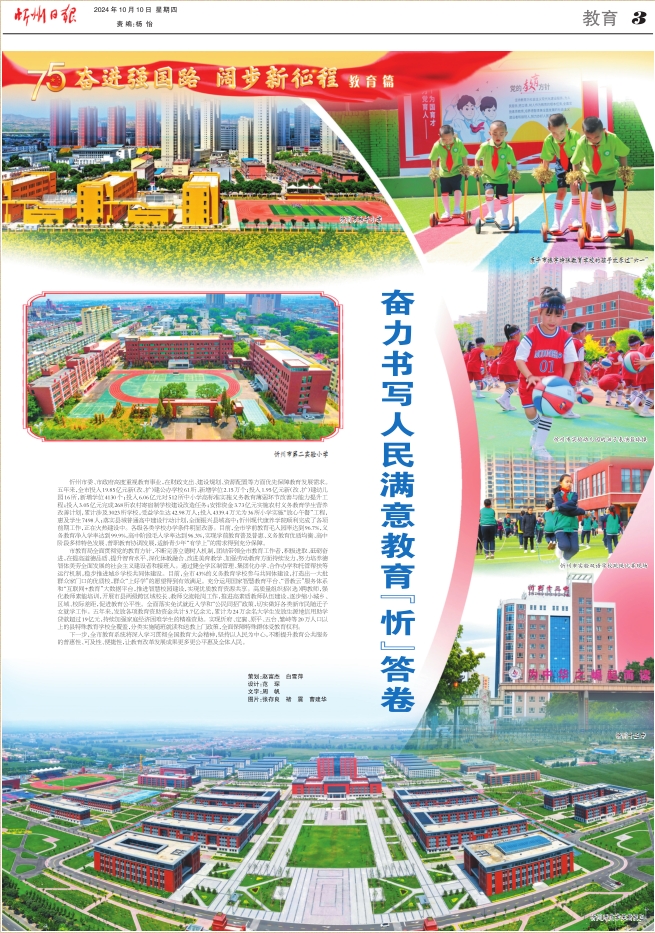 市教育局全面貫徹黨的教育方針,不斷完善立德樹人機(jī)制,團(tuán)結(jié)帶領(lǐng)全市教育工作者,積極進(jìn)取、砥礪奮進(jìn),在提高道德品質(zhì)、提升智育水平、深化體教融合、改進(jìn)美育教學(xué)、加強(qiáng)勞動(dòng)教育方面持續(xù)發(fā)力,努力培養(yǎng)德智體美勞全面發(fā)展的社會(huì)主義建設(shè)者和接班人。通過(guò)健全學(xué)區(qū)制管理、集團(tuán)化辦學(xué)、合作辦學(xué)和托管幫扶等運(yùn)行機(jī)制,穩(wěn)步推進(jìn)城鄉(xiāng)學(xué)校共同體建設(shè)。目前,全市43%的義務(wù)教育學(xué)校參與共同體建設(shè),打造出一大批群眾家門口的優(yōu)質(zhì)校,群眾“上好學(xué)”的愿望得到有效滿足。充分運(yùn)用國(guó)家智慧教育平臺(tái)、“晉教云”服務(wù)體系和“互聯(lián)網(wǎng)+教育”大數(shù)據(jù)平臺(tái),推進(jìn)智慧校園建設(shè),實(shí)現(xiàn)優(yōu)質(zhì)教育資源共享。高質(zhì)量組織招(選)聘教師,強(qiáng)化教師素能培訓(xùn),開展市縣兩級(jí)跨區(qū)域校長(zhǎng)、教師交流輪崗工作,推進(jìn)高素質(zhì)教師隊(duì)伍建設(shè),逐步縮小城鄉(xiāng)、區(qū)域、校際差距,促進(jìn)教育公平性。全面落實(shí)免試就近入學(xué)和“公民同招”政策,切實(shí)做好各類新市民隨遷子女就學(xué)工作。五年來(lái),發(fā)放各項(xiàng)教育資助資金共計(jì)5.7億余元,累計(jì)為24萬(wàn)余名大學(xué)生發(fā)放生源地信用助學(xué)貸款超過(guò)19億元,持續(xù)加強(qiáng)家庭經(jīng)濟(jì)困難學(xué)生的精準(zhǔn)資助。實(shí)現(xiàn)忻府、定襄、原平、五臺(tái)、繁峙等20萬(wàn)人口以上的縣特殊教育學(xué)校全覆蓋,分類實(shí)施隨班就讀和送教上門政策,全面保障特殊群體受教育權(quán)利。