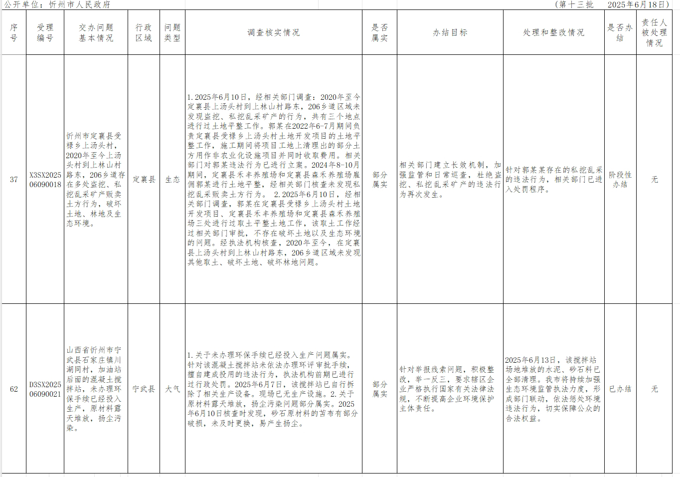 中央生態(tài)環(huán)境保護(hù)督察組群眾信訪(fǎng)舉報(bào)轉(zhuǎn)辦和邊督邊改公開(kāi)情況一覽表(第十三批)