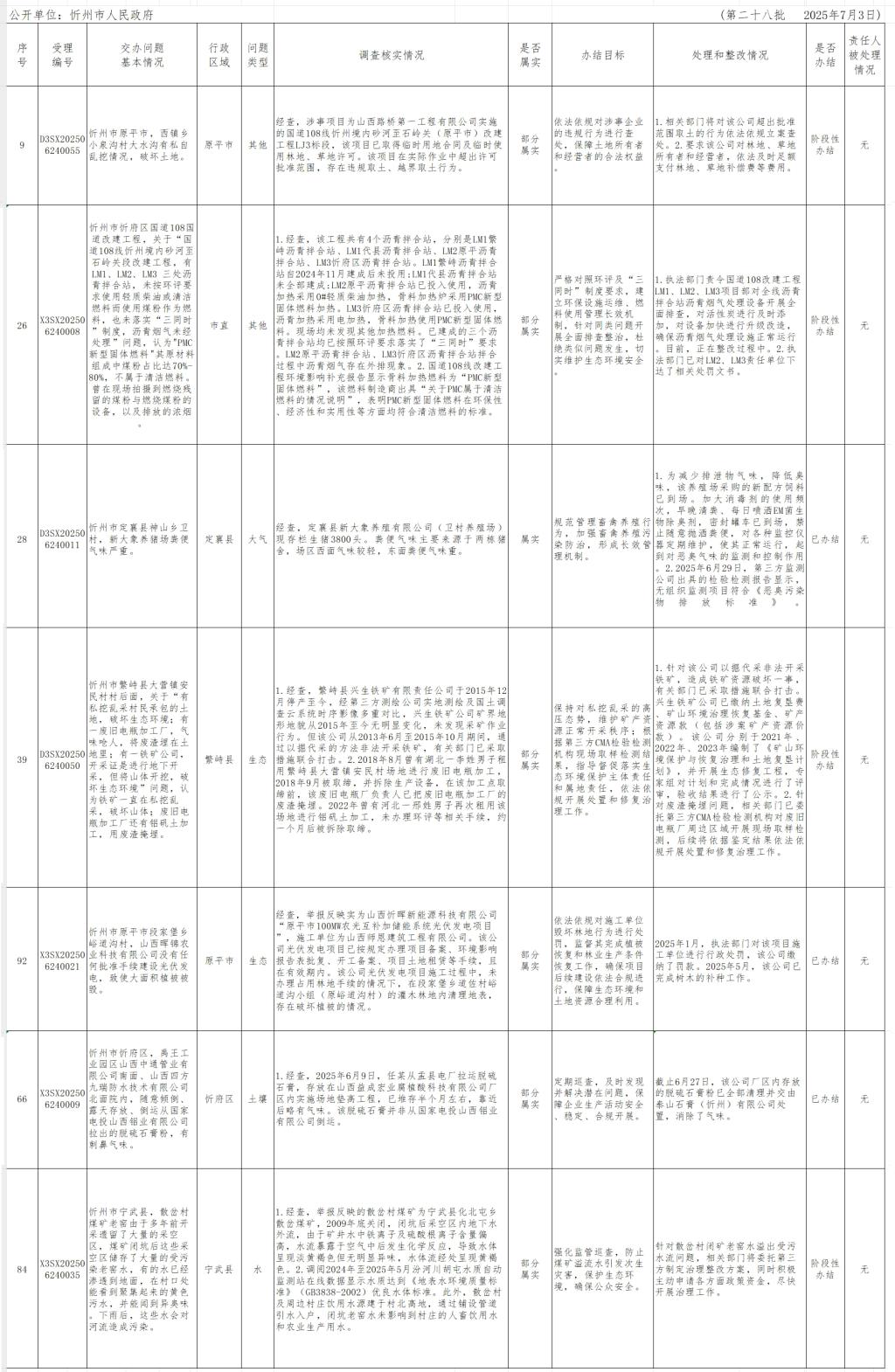 中央生態(tài)環(huán)境保護(hù)督察組群眾信訪舉報轉(zhuǎn)辦和邊督邊改公開情況一覽表(第二十八批)