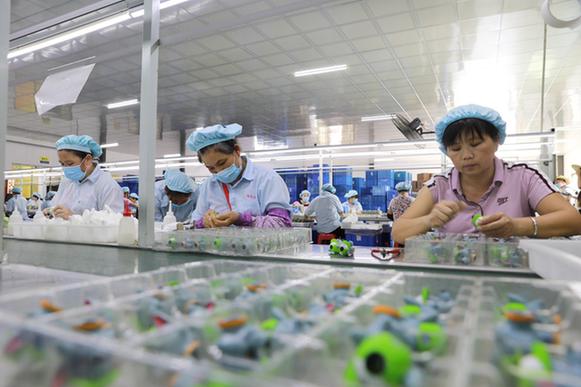 2017年,連樟村建起了一個(gè)913平方米的車間,2018年開始投產(chǎn),主要生產(chǎn)兒童玩具,村民責(zé)負(fù)流水線上的裝配生產(chǎn),成品發(fā)往全國(guó)各地,有些還出口到了海外。通過(guò)引導(dǎo)市場(chǎng)資本向農(nóng)村轉(zhuǎn)移,地處粵北偏遠(yuǎn)山區(qū)的連樟村辦起了工廠,不僅帶動(dòng)本地村民出現(xiàn)返鄉(xiāng)潮,連鄰近的外鎮(zhèn)村民也有了更多就業(yè)選擇。