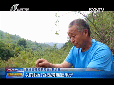 安澤縣杜村鄉(xiāng)村民 解長春:以前我們就是摘連翹果子,這就是連翹果,現(xiàn)在我們就是摘這個連翹葉子,連翹葉子摘十斤,烤干以后烤成二斤(茶),二斤連翹茶能賣200到300塊錢,這個價格相當(dāng)好。