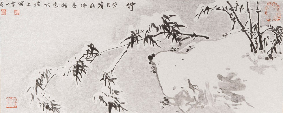 因為雪無聲無味,在沉沉夜色里,雪的形象難以捕捉,因此詠雪詩中寫夜雪的并不多。白居易的《夜雪》卻能不落正面描寫的窠臼,“已訝衾枕冷,復見窗戶明。夜深知雪重,時聞折竹聲?!比姳M用側(cè)面烘托,因衾寒窗明而知有雪、因聞折竹聲而知雪重,樸實自然卻韻味十足。