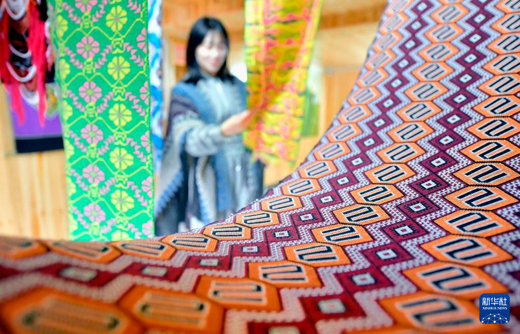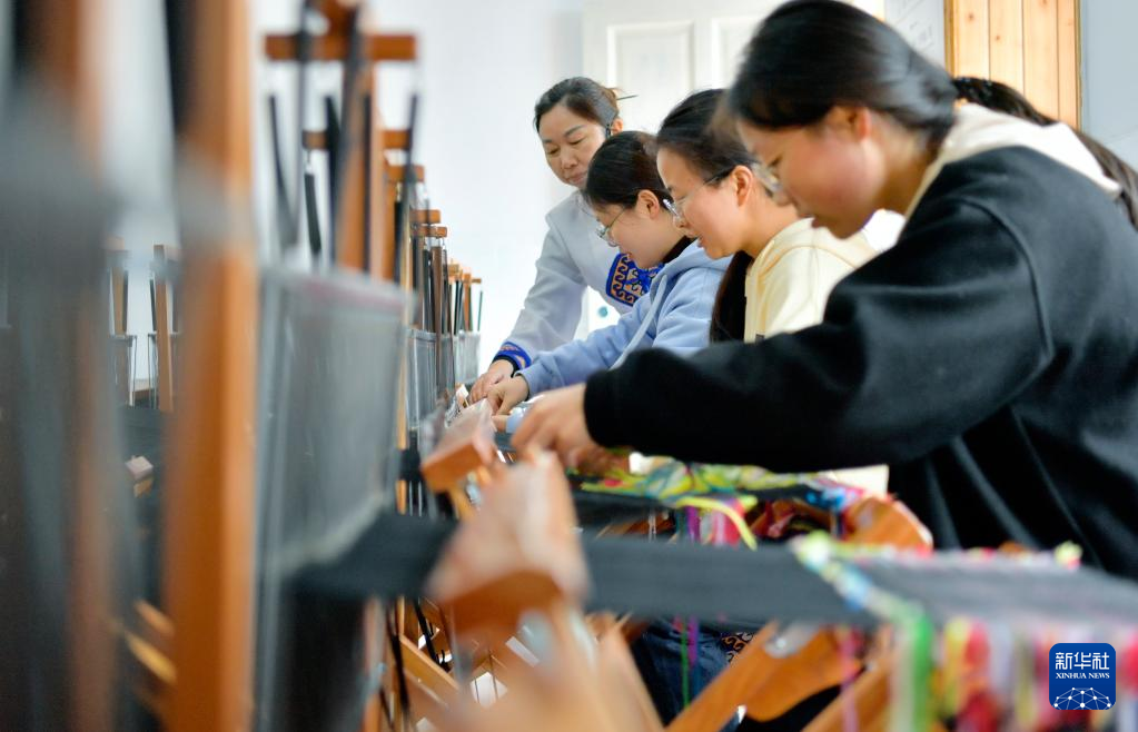 春暖花開時(shí)節(jié),湖北省宣恩縣西蘭卡普傳承基地迎來各地的學(xué)生前來研學(xué)。學(xué)生們在這里了解土家織綿文化、學(xué)習(xí)傳統(tǒng)手工技藝,感受非遺文化的魅力。西蘭卡普是一種土家織錦,色彩鮮明,紋樣美觀,其編織技藝被列入國家級非物質(zhì)文化遺產(chǎn)名錄。新華社發(fā)(宋文攝)