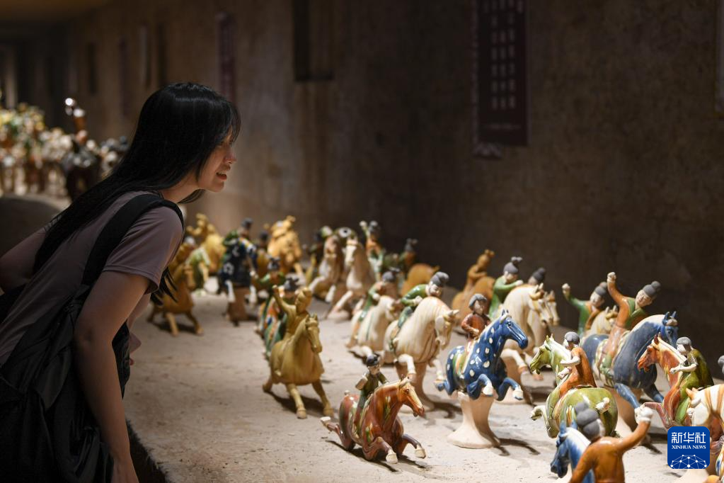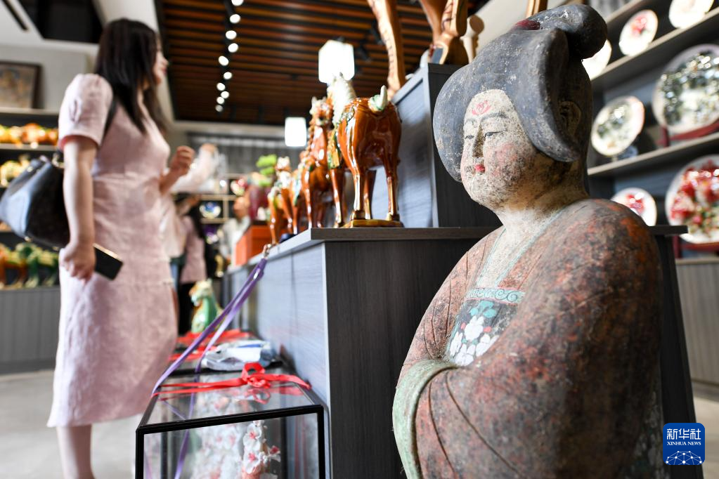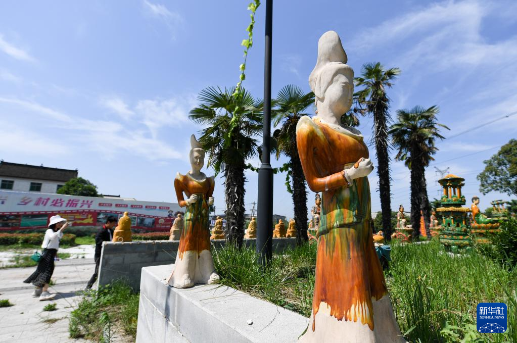 6月6日,游客在南石山村的唐三彩作品陳列展示館內(nèi)參觀。??