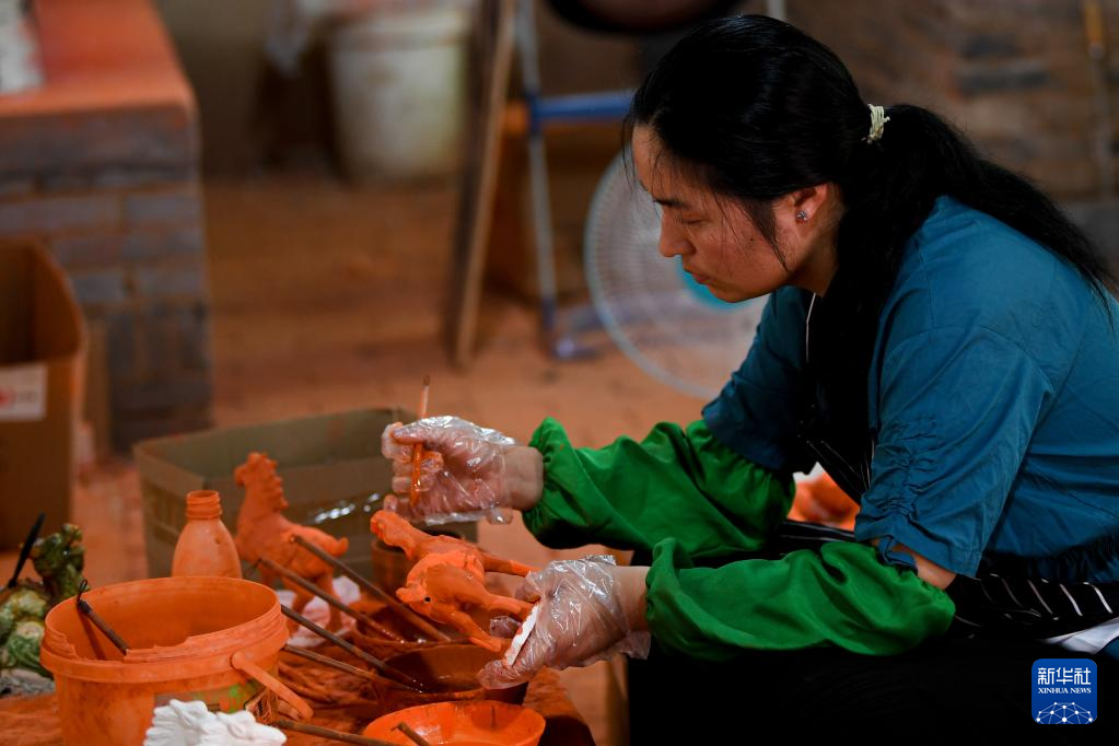 河南省洛陽市朝陽鎮(zhèn)南石山村以生產(chǎn)唐三彩而聞名。近年來,當(dāng)?shù)卣e極引導(dǎo)三彩產(chǎn)業(yè)數(shù)字化建設(shè)工作,推動(dòng)唐三彩燒制技藝傳習(xí)館、唐三彩陶藝博物館、唐三彩文化研學(xué)所等優(yōu)化升級(jí)。目前,南石山村唐三彩產(chǎn)業(yè)的專業(yè)燒制藝人有2000余人、文化企業(yè)68家,年產(chǎn)值達(dá)3.5億元。新華社記者 吳剛 攝