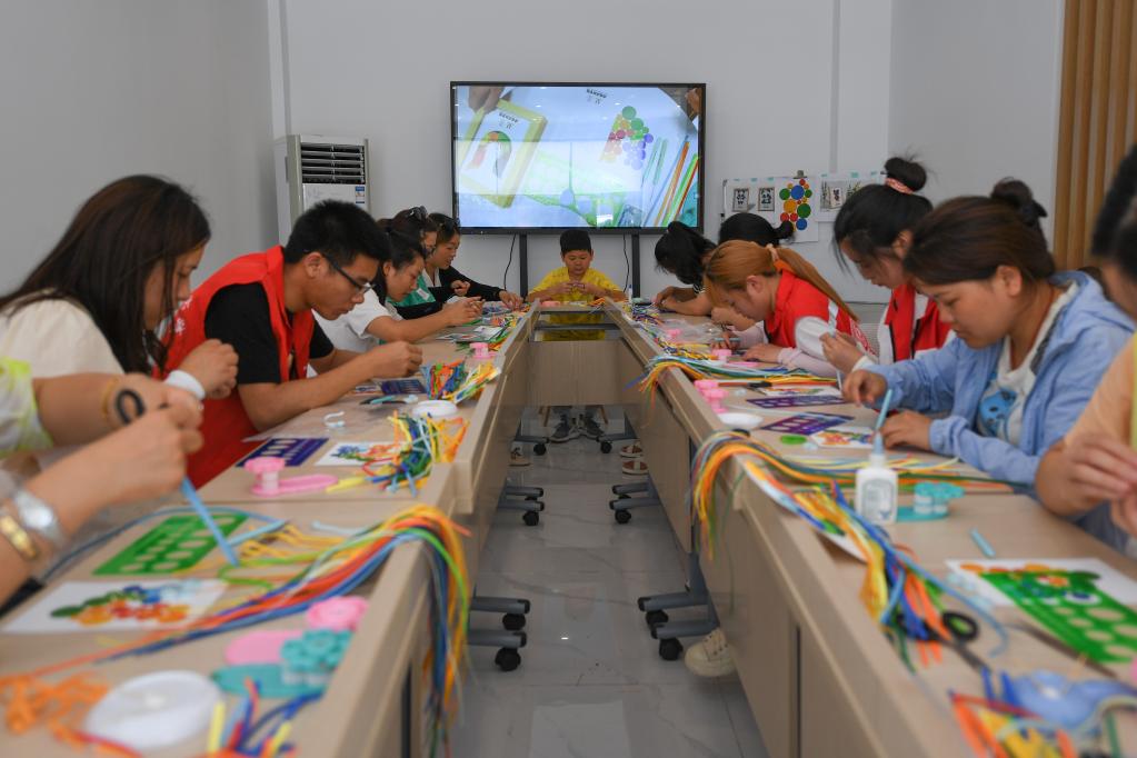 7月5日,在成都市溫江區(qū)衍匠文創(chuàng)工作室,不少市民前來(lái)體驗(yàn)衍紙畫制作。新華社記者 胥冰潔 攝
