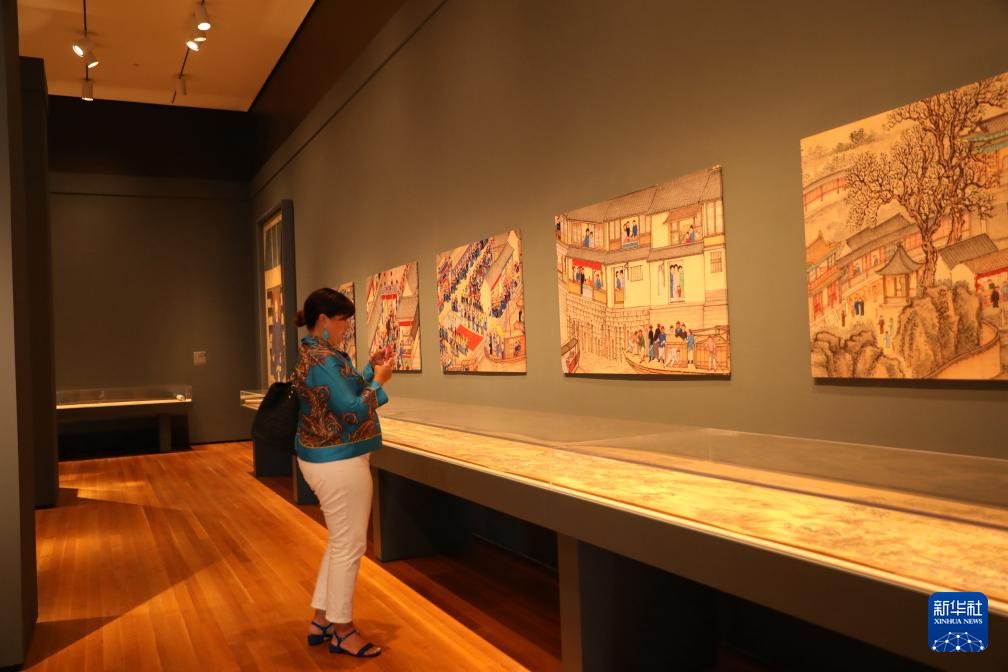 9月6日,在美國俄亥俄州克利夫蘭藝術博物館,一名男子參觀“人間天堂:中國江南珍寶展”。新華社記者施春攝