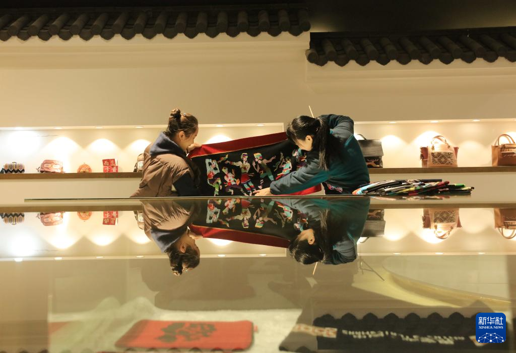 立冬過(guò)后,湖南省張家界市武陵源區(qū)非遺土家族織錦生產(chǎn)企業(yè)根據(jù)顧客訂單,制作圍巾、披肩、拖鞋、頭飾等冬季系列織錦產(chǎn)品,拓展線上線下銷售渠道,迎接冬天銷售旺季。新華社發(fā)(吳勇兵攝)