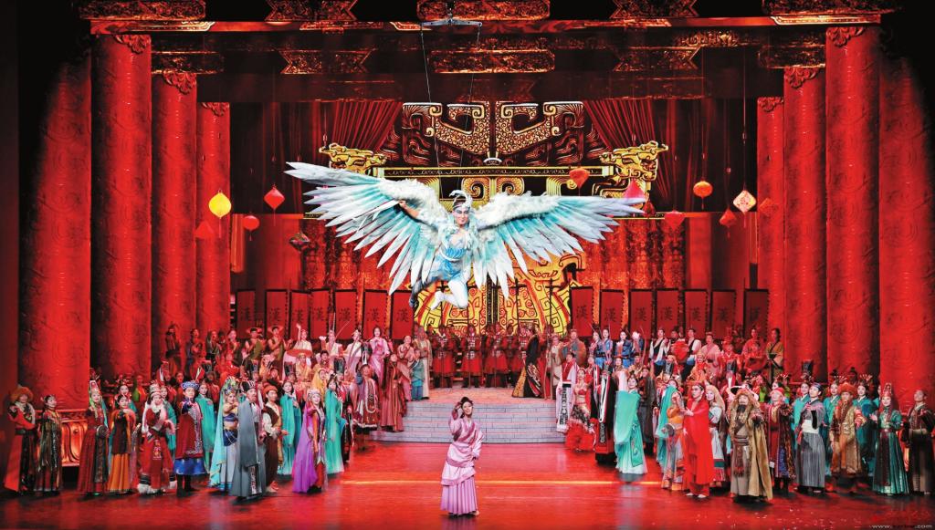 戲劇月的開幕大戲是詩樂舞大秀《天下歸心》,作品在舞臺空間上立體展示了濃郁國風特色的時空布局和視覺風格,劇場內敦煌飛天式實景呈現,“詩”有相、“樂”有形、“舞”傳神,再現了雁門關外的金戈鐵馬,以德化民的泰安繁榮,流傳千年的文景之治……作品通過大漢王朝和匈奴之間在雁門關地域,從戰(zhàn)爭到盟約、再到通婚的歷史故事,表現出“天下一家”的理念。觀眾身臨其境地享受到了一場不可多得的視聽和精神盛宴。該劇也是忻州大劇院建成以來首次對外公開演出。