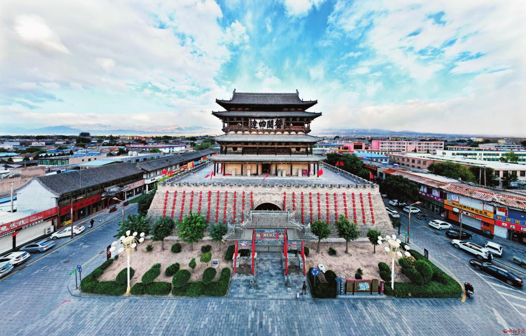 雁門關(guān)、寧武關(guān)、偏頭關(guān),是山西內(nèi)長(zhǎng)城的三關(guān)。其中雁門關(guān)地處要沖,歷來是長(zhǎng)城內(nèi)外兵家必爭(zhēng)之地。代縣古城因雁門關(guān)而生,因雁門關(guān)而聞名,城外有三十九堡十二聯(lián)城,城內(nèi)有關(guān)城、甕城,以及城墻上的十二座門樓、角樓,再加上城中的鼓樓、鐘樓,由此構(gòu)筑成龐大的軍事防御體系。邊靖樓地處古城中心,是整個(gè)三關(guān)防御體系的核心指揮部,這也正是一個(gè)州治所在地的鼓樓規(guī)模遠(yuǎn)遠(yuǎn)超過京師鼓樓規(guī)模的重要原因。