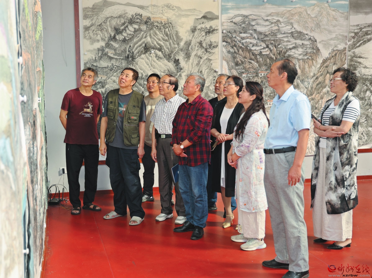 中國青綠山水畫院院長顧大明向記者介紹說,這次公益性培訓(xùn)活動從7月10日開始至8月5日結(jié)束,為期25天,前10天為寫生期、后15天為創(chuàng)作期,來自全國各地的34名畫家學(xué)員參加了培訓(xùn)。負責(zé)輔導(dǎo)的老師都是畫院的院長、副院長,同時均是中國美術(shù)家協(xié)會會員,有的還是大學(xué)教授、專業(yè)畫家、軍旅畫家。本次培訓(xùn)以趙家溝黃土高原地貌作為寫生與創(chuàng)作的題材,學(xué)員后期創(chuàng)作的山水畫作品都是2.4米×2米的大幅作品,表現(xiàn)手法各異,均達到了國展水平。最終有7名學(xué)員被評為優(yōu)秀學(xué)員,并被聘為中國青綠山水畫院畫家。