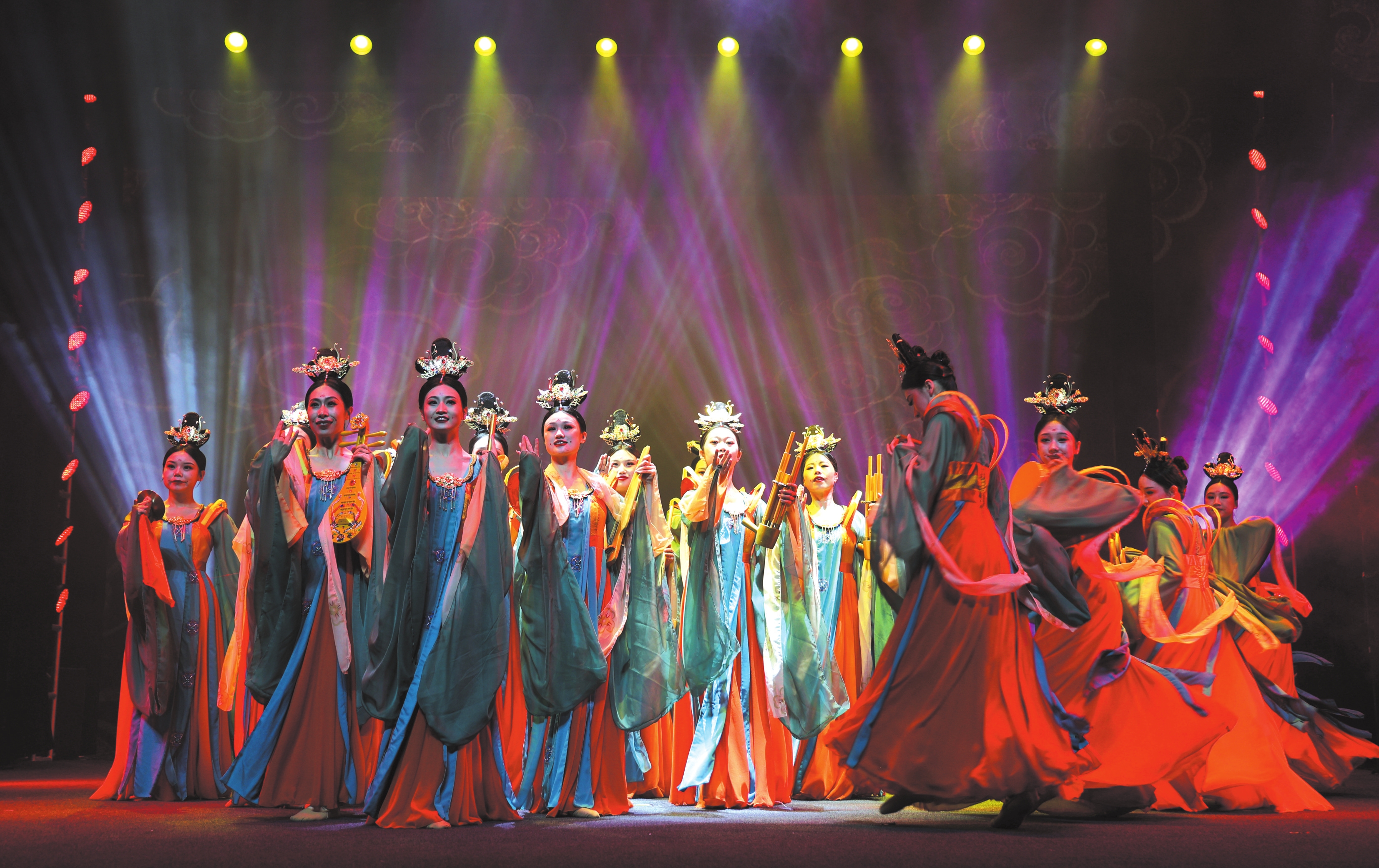 仙樂飄飄、衣袂翩躚……2025年年初,在忻州市元旦晚會上,以《洪福周天》為名的舞蹈節(jié)目被重磅推出,群眾們第一次領略到了“18樂伎”的舞臺藝術魅力,十八位身著復原古裝的舞者從靜止的懸塑造型開始,隨著音樂逐漸蘇醒,展開一場跨越時空的音樂對話。節(jié)目最后,舞者又緩緩回歸最初的靜態(tài)姿勢,好像完成了一次藝術的輪回。