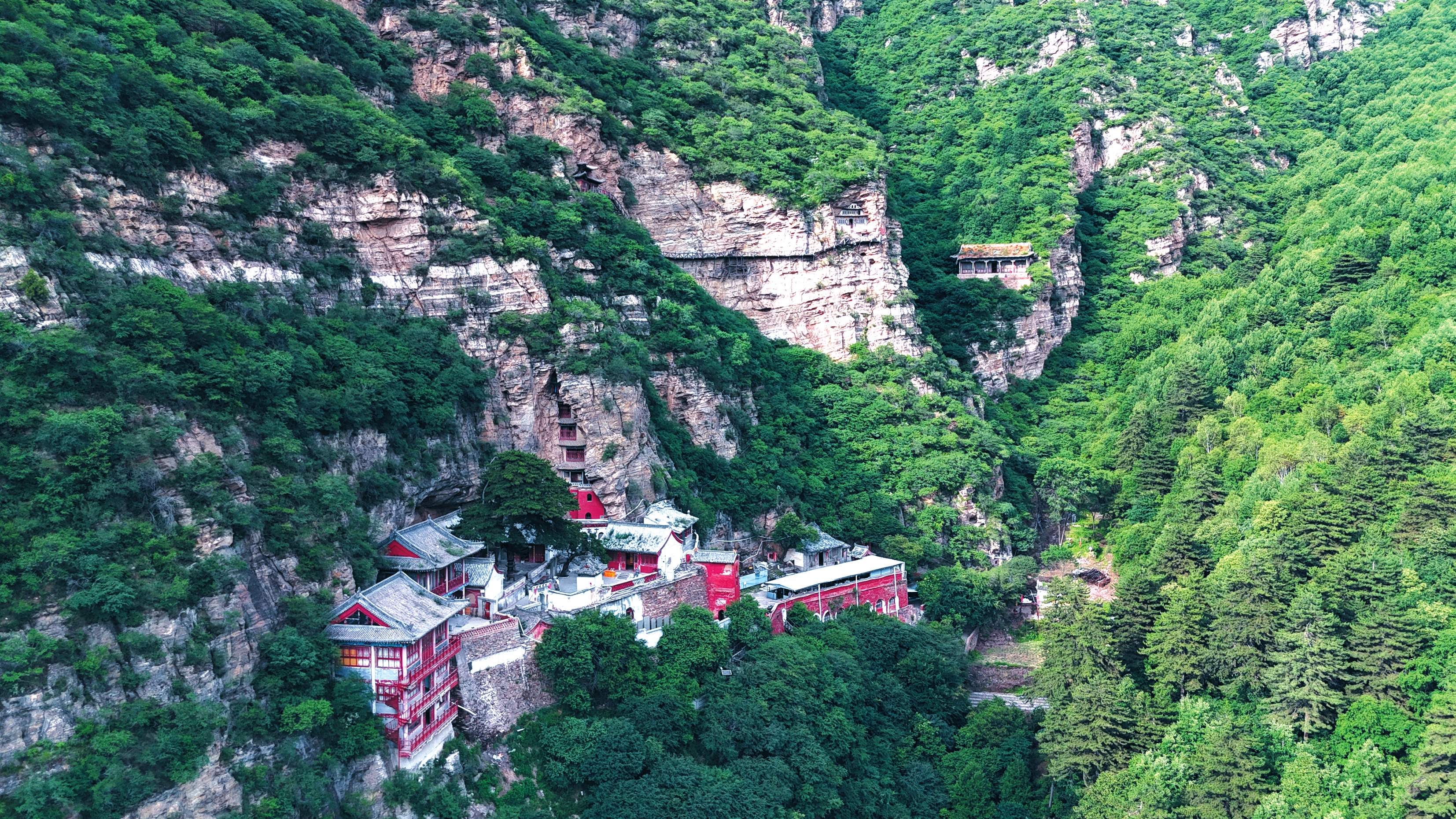 北天臺(tái)山的精魂,深植于溝掌幽邃處的“三晉第一觀”——趙杲觀。其名源自一段浸透血淚的春秋悲歌。據(jù)《呂氏春秋》記載,公元前475年,晉國(guó)卿大夫趙襄子為拓疆土,于夏屋山(今代縣東北,和勾注山相接)設(shè)謀誘殺其姐夫代王。代王夫人(趙襄子之姊)聞此噩耗,質(zhì)問(wèn)弟弟無(wú)果,遂悲憤自戕以殉故國(guó)。代國(guó)丞相趙杲,毅然掛印封金,攜遺臣家眷遁入此山,避世苦修。后人感佩其忠貞氣節(jié),遂將其棲隱之地尊為“趙杲觀”。此觀依天然洞穴營(yíng)建,素有“天臺(tái)十八洞,洞洞各不同”之奇絕,創(chuàng)建于北魏太延年間(公元435年-440年),歷經(jīng)一千五百余載風(fēng)霜,今為國(guó)家級(jí)森林公園、山西省重點(diǎn)風(fēng)景名勝區(qū)與重點(diǎn)文物保護(hù)單位。古人曾贊:“臨幽谷,倚奇巖,山清水秀,洵代郡之勝境,人間第一蓬萊也?!?/p>