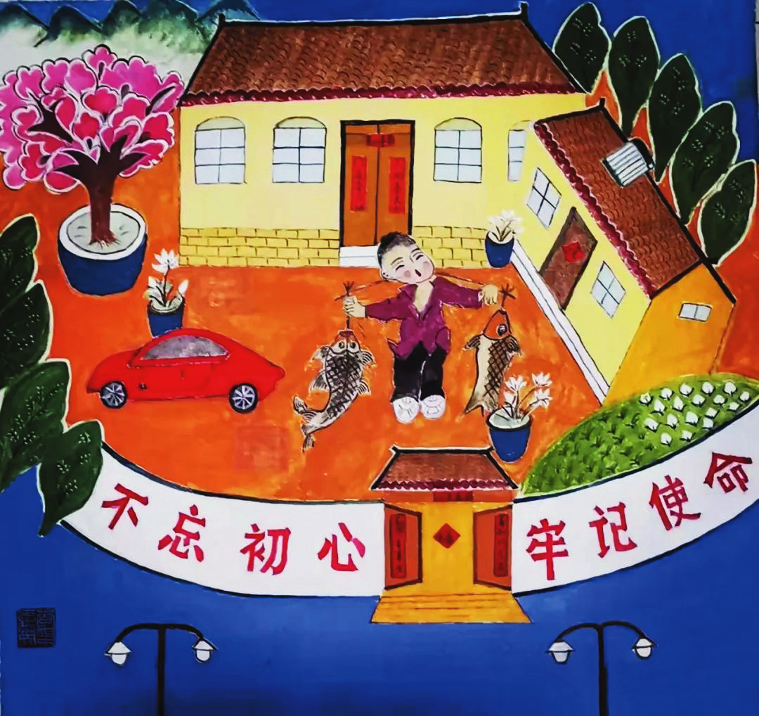 她們的作品,取材于農(nóng)村、農(nóng)業(yè)、農(nóng)民生活,或表現(xiàn)美好的生活場景,或反映豐收的喜悅,或體現(xiàn)鄉(xiāng)愁,在表現(xiàn)手法上采用大膽的夸張、變形,巧用艷麗的色彩,人物刻畫細(xì)致入微,內(nèi)心喜悅躍然紙上,富有鮮明的地方特色。綜觀她們的作品,無不展現(xiàn)了社會主義新農(nóng)村在新時(shí)代的新變化、新風(fēng)貌,在傳承和弘揚(yáng)代縣文化、引領(lǐng)社會主義精神文明建設(shè)方面做出了出色的嘗試與實(shí)踐。