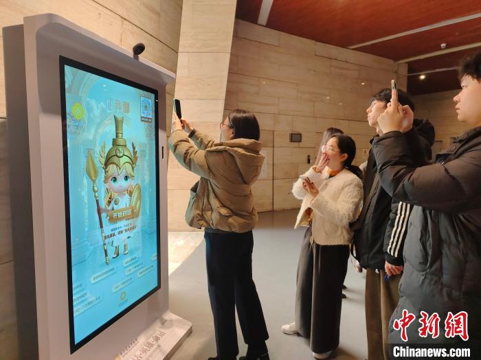 觀眾掃碼識(shí)別,在線體驗(yàn)數(shù)智人“雅典娜”。成都金沙遺址博物館供圖