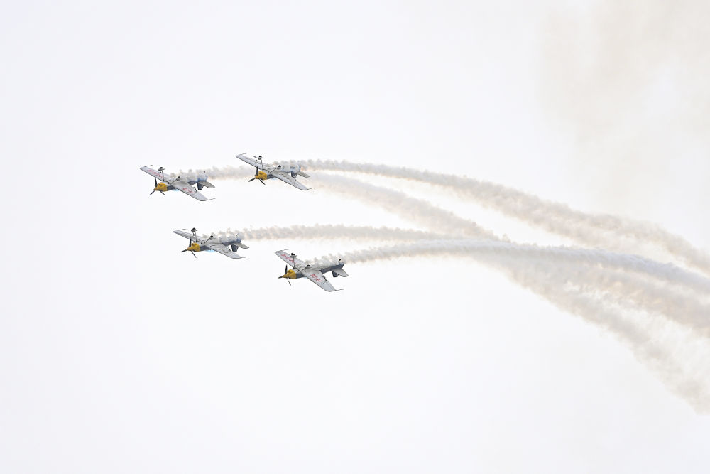 2023年9月28日,特技飛行表演隊在2023太原國際通用航空博覽會上表演。新華社記者楊晨光 攝