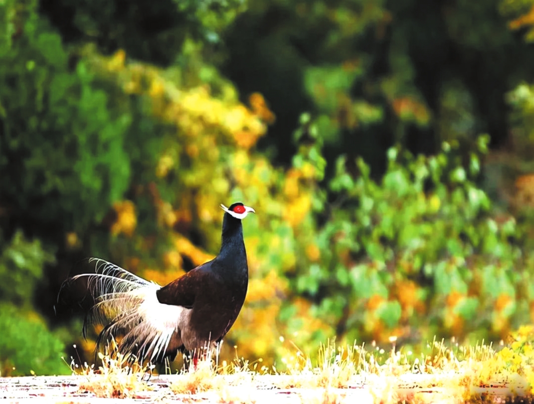 有效改善,分布的縣域和自然保護(hù)區(qū)數(shù)量均有所增加,種群數(shù)量實(shí)現(xiàn)了穩(wěn)步增長(zhǎng)。此外,褐馬雞的棲息地特征也有所變化,不僅在高海拔區(qū)域的華北落葉松、云杉林中有分布,在大面積的油松林區(qū)也適宜其棲息。調(diào)查顯示,目前山西省褐馬雞分布區(qū)的總面積達(dá)到1.19萬平方公里,其中適宜褐馬雞棲息的森林面積約5500平方公里,褐馬雞數(shù)量平均為1.9萬只左右,涉及8市45個(gè)縣(區(qū))。