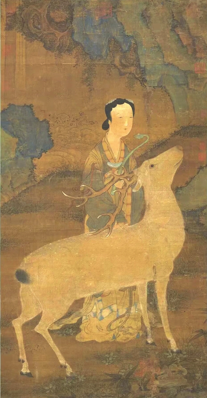 在傳統(tǒng)文化中,鹿是一種有神力的動物,神話傳說中鹿往往是神仙的坐騎。李白一生尋仙問道,其《夢游天姥吟留別》中有“且放白鹿青崖間,須行即騎訪名山”之名句。南極仙翁的白鹿,不僅被繪制在壽畫里,在文學中也大放異彩?!段饔斡洝分械陌茁咕褪菈坌悄蠘O仙翁的坐騎,偷得壽星的蟠龍拐杖后下凡為妖。在《白蛇傳》里,白娘子獨闖昆侖山,欲盜取起死回生的靈芝仙草,遭遇鶴、鹿二仙童阻攔。清代神魔小說《女仙外史》中的鹿童化為道人,下凡后為禍人間。屢破票房紀錄的動畫電影《哪吒2》,其中的反派之一鹿童,是無量仙翁的大弟子,擔任捕妖隊頭領,戲份頗重。