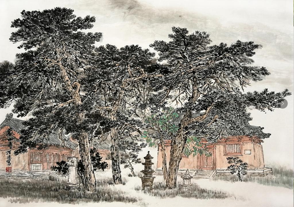 后來因為他繪畫上取得的成績,調到了忻府區(qū)文聯(lián)工作。條件好了,畫的畫更多了,畫風依然樸實親切,給人一種視覺的舒適感。這幾年他是在一路前進的,他筆下的線條清朗有力,墨色變化也更加豐富,畫中有了渾厚華滋的氣象。細看他的畫,樸實中蘊藏著精巧,拙拙的行筆中偶露鋒厲,給畫面帶來活力生機。我們在一起寫生,他在畫面經(jīng)營上、構圖處理上總能給人意想不到的驚喜。畫面虛實處理把握的恰到好處,又能準確表現(xiàn)自然原貌的神采。于不知不覺中將自己的審美和情感融入了畫中,完成的寫生總比自然景色更加生動、更吸引人的目光,但又讓你看不出他是在哪里做了手腳。
