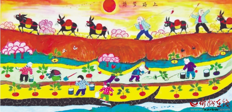 炕圍畫又稱“墻圍畫”,是一種中國民間常見的室內(nèi)裝飾畫。忻州處于高寒地帶,在農(nóng)村家家戶戶都用火炕取暖御寒,炕上的墻面極易脫落起皮,蹭臟衣物被褥。于是人們以刷墻所用的白土調(diào)以膠水,在環(huán)炕的墻上涂高約二尺的“圍子”,既保護了墻面,又使人們免遭臟衣污物之累。后來,炕圍畫逐漸發(fā)展為以顏料做底、色彩畫花、桐油涂罩,既鮮艷明亮,又堅固耐久。日常臟污了,用濕布擦拭,則又光亮如新。