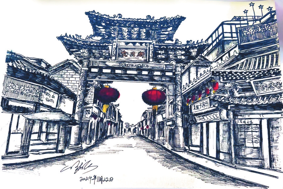 說起鋼筆畫來,侯龍飛滔滔不絕。鋼筆畫起源于歐洲,最初用于裝飾紋樣和插圖,后來逐漸發(fā)展成為一種獨立的藝術形式。近年來,隨著青年藝術家的加入,鋼筆畫在國內(nèi)煥發(fā)出新的生命力,展現(xiàn)了其在描繪人文自然和時代風貌方面的獨特魅力。藝術家們通過鋼筆畫記錄生活、表達情感,展現(xiàn)了這一藝術形式的多樣性和生命力。侯龍飛的創(chuàng)作不僅是對傳統(tǒng)技法的傳承,更是對新時代藝術表達的探索。