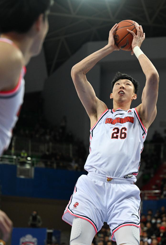 12月11日,廣東隊(duì)球員周琦在比賽中投籃。新華社記者 趙子碩 攝