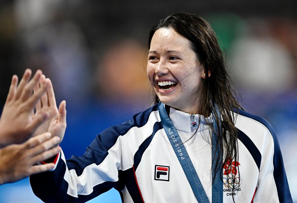 7月29日,季軍中國香港選手何詩蓓在頒獎儀式后。當(dāng)日,巴黎奧運會游泳女子200米自由泳決賽在拉德芳斯體育館舉行。新華社記者 王鵬 攝