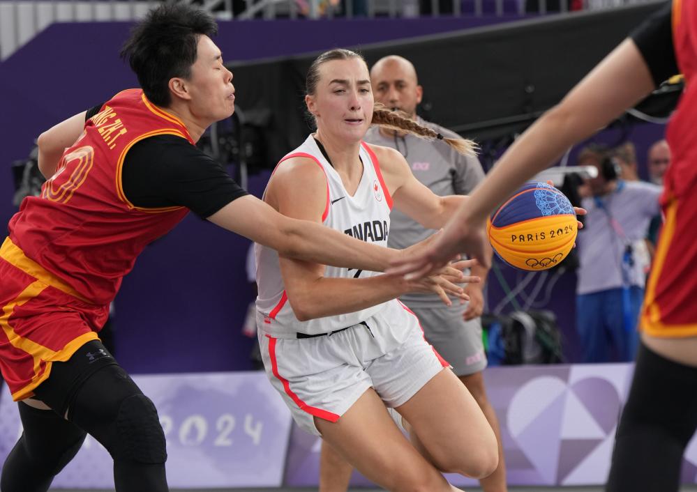女子比賽中,中國女隊遭遇首敗,以11:21不敵加拿大女隊。本場比賽中國女隊攻防兩端均被壓制,而加拿大隊外線手感爆棚,全場命中5記兩分球,雙方分差逐漸被擴大。這是中國女隊同加拿大隊的首次交手,加拿大隊員凱瑟琳·普勞夫表示,面對勁敵中國隊,她們賽前做了大量研究,并且有針對性地做了兩套攻防方案靈活應對。